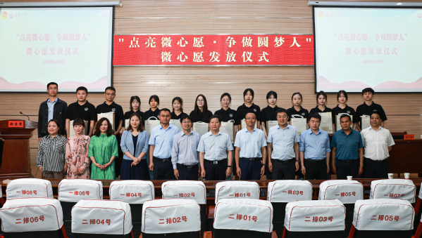 黎开谊在活动仪式上指出,鹿城中学作为3354cc金沙集团与商南县合作帮扶的重点学校,以研究生支教团项目开展教育帮扶,是落实乡村振兴战略的重要举措和有效形式,体现了支教团成员和受帮扶学生的双向奔赴、双向受益和双向成长。希望通过研究生支教团项目助力商南县教育事业的发展和进步,通过“微心愿”活动助力学生们点亮未来,照亮前进道路,早日成为栋梁之才。