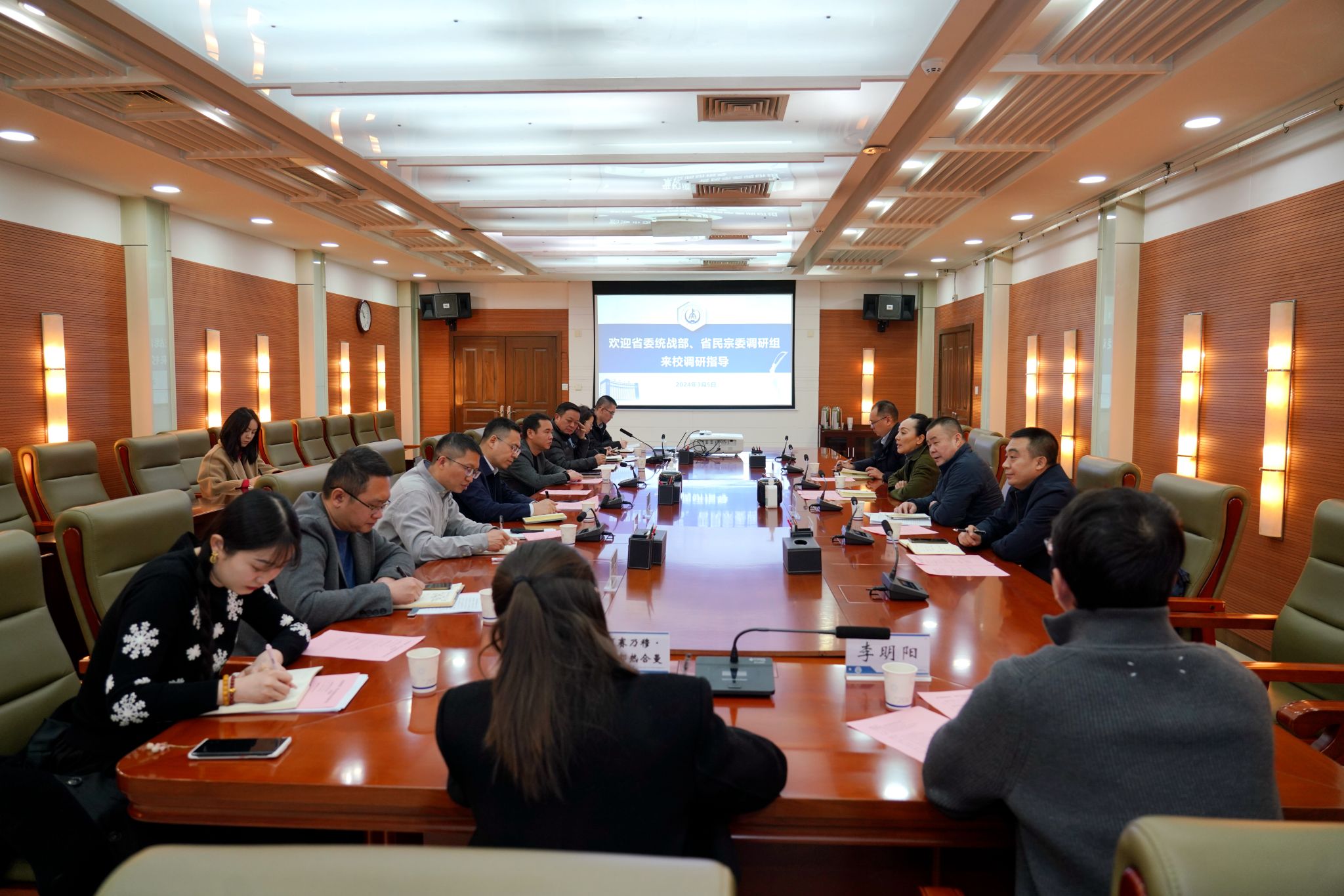 徐引正代表学校对调研组一行来校调研指导表示欢迎,对省委统战部、省民宗委长期给予学校民族宗教工作的大力支持表示感谢。他表示,学校党委深入学习贯彻习近平总书记关于加强和改进民族工作的重要思想、关于宗教工作的重要论述,坚持以民族工作的“十二个必须”和宗教工作的“九个必须”为根本遵循,全面贯彻党的教育方针,坚持立德树人根本任务,持续深化铸牢中华民族共同体意识教育,全面抵御和防范校园传教渗透,全力守护学校政治安全和校园稳定,着力培养堪当民族复兴重任的时代新人。下一步,学校党委将巩固拓展主题教育成果,聚主线,明方向,抓重点,守底线,高质量统筹发展和安全,以时时放心不下的责任感、主动担当作为的精气神,扎实推动学校民族宗教工作高质量发展,奋力写好“教育强国,长大何为”的时代答卷。