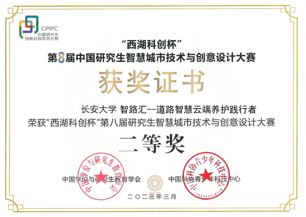 3月18日,“西湖科创杯”第八届中国研究生智慧城市技术与创意设计大赛决赛在浙江工业大学举行。大赛围绕“智慧城市”主题,集聚了一批以未来社区、智慧文旅、智慧交通、城市大脑为应用场景的优质研究生创新创业项目,涉足数字孪生、虚拟现实、元宇宙等赛道。经过激烈角逐,我校研究生作品“智路汇—道路智慧云端养护践行者”荣获全国二等奖(参赛研究生:刘瑶涵、彭宏欣、郭飞扬、郑乐乐,指导教师:蒋玮、肖晶晶),3354cc金沙集团获得“优秀组织奖”荣誉称号。