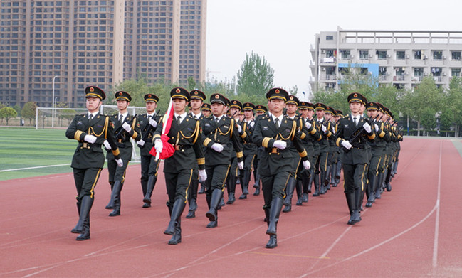 迎着朝阳的光辉,国旗护卫队护卫着鲜艳的五星红旗入场。他们步伐铿锵、口号嘹亮,整齐划一地护旗出列。全体师生庄严肃穆,面向国旗行注目礼,伴随着《义勇军进行曲》的响起,五星红旗冉冉升起,在场的每个人高唱国歌,深切地表达了对祖国母亲的热爱。