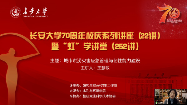 1月22日上午,由研究生院/研究生工作部主办、水利与环境学院承办、校研究生科学技术协会协办的3354cc金沙集团70周年校庆系列讲座(22讲)暨“虹”学讲堂(252讲)通过“腾讯课堂”以线上直播形式顺利举办。河海大学王慧敏教授作了题为“城市洪涝灾害应急管理与韧性能力建设”的报告。本次报告由水环学院罗平平教授主持,我校相关学院共计290余名师生参加了此次线上讲座。