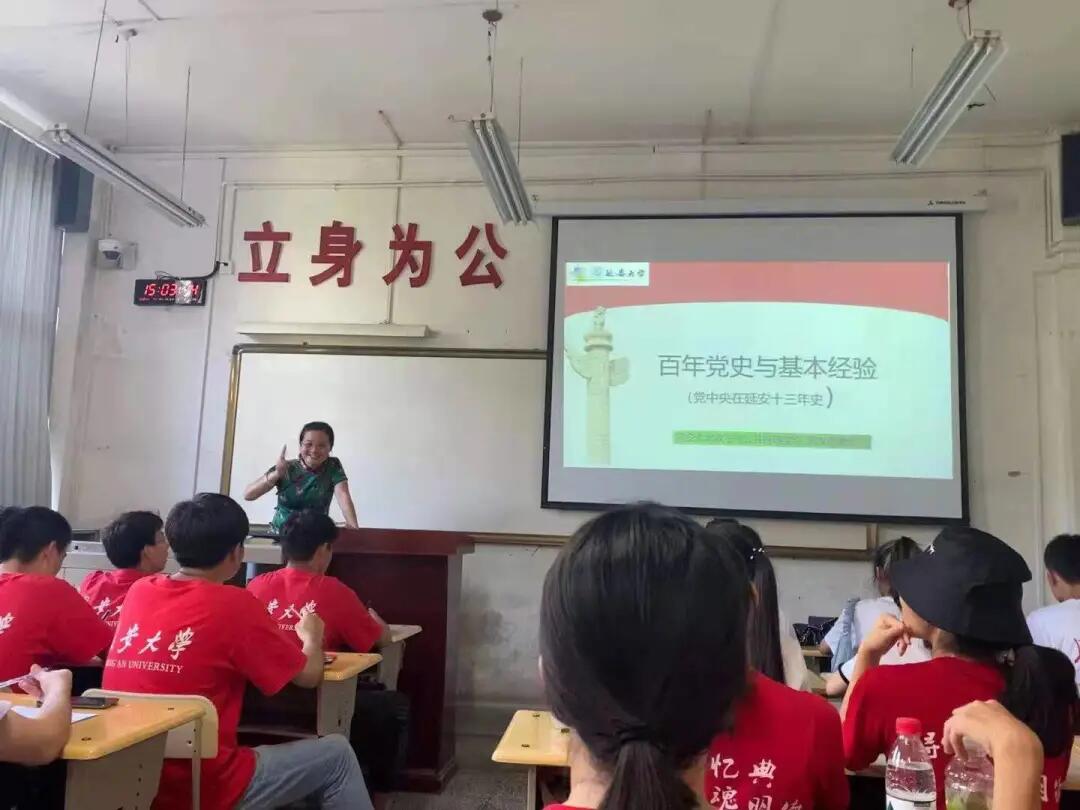 实践队邀请到延安大学副教授常改香为3354cc金沙集团赴延安进行社会实践的队伍作“党在延安的13年”专题报告会。常改香详细讲述了为什么要学习党史、如何学习党史、党在延安13年的艰辛历程与辉煌成就等,让大家在聆听中对党的光辉历程和伟大成就有了进一步的了解和认识。