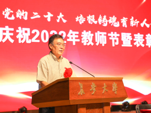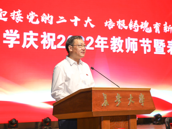 优秀研究生指导教师、理学院教授封建湖代表获奖教师发言。他结合自身执教生涯,分享了努力成为一名“四有”好老师的人生追求。学生代表、未来交通学院2020级本科生董帅均代表长大学子向全校教师表达了感谢和节日祝愿。