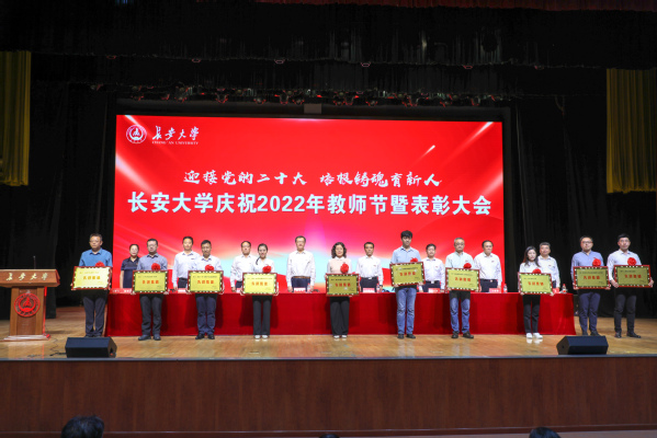 9月9日,学校在长安文化艺术中心召开庆祝2022年教师节暨表彰大会。校党委书记陈志坚,校党委副书记、纪委书记孟德勇,校党委副书记徐引正、黎开谊,副校长朱杰君、王建伟、范文以及校党委常委、校长助理出席大会,校党委副书记、副校长彪晓红主持会议。