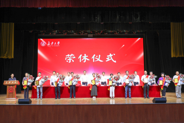 会议举行了2022年度退休教师荣休仪式,10位教龄超过38年的退休教师代表接受学生献花,校党委书记陈志坚向退休教师颁发了荣休纪念奖牌。