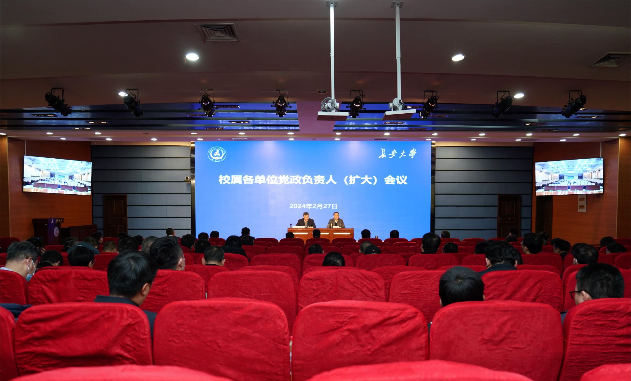2月27日下午,学校召开校属各单位党政负责人(扩大)会议,总结寒假主要工作,安排部署2024年工作任务。校党委书记陈志坚主持会议并讲话,校长沙爱民总结寒假及开学初主要工作并安排全年要点工作。会议设北校区北辰楼会议中心二层报告厅、南校区北院学术交流中心报告厅两个会场。