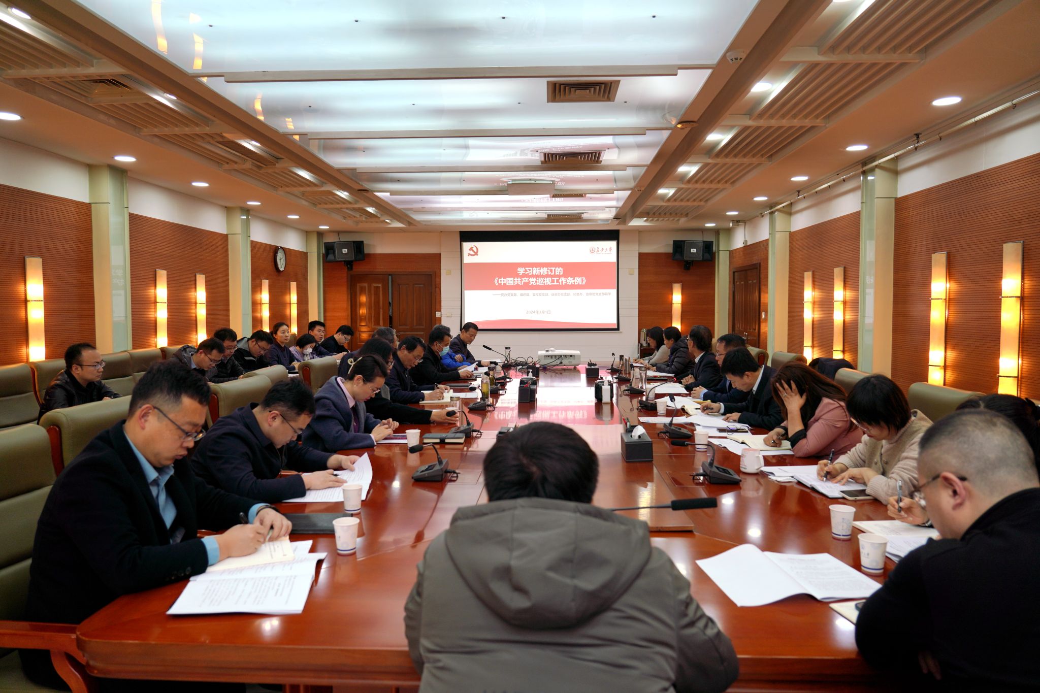 3月1日下午,党办党支部,组织部、党校党支部,巡察办党支部和纪委办、监察处党支部举办联学活动,全体党员干部集体学习《中国共产党巡视工作条例》。校党委书记陈志坚,校党委副书记、纪委书记陶继东,校纪委委员孟德勇以普通党员身份参加支部联学活动。